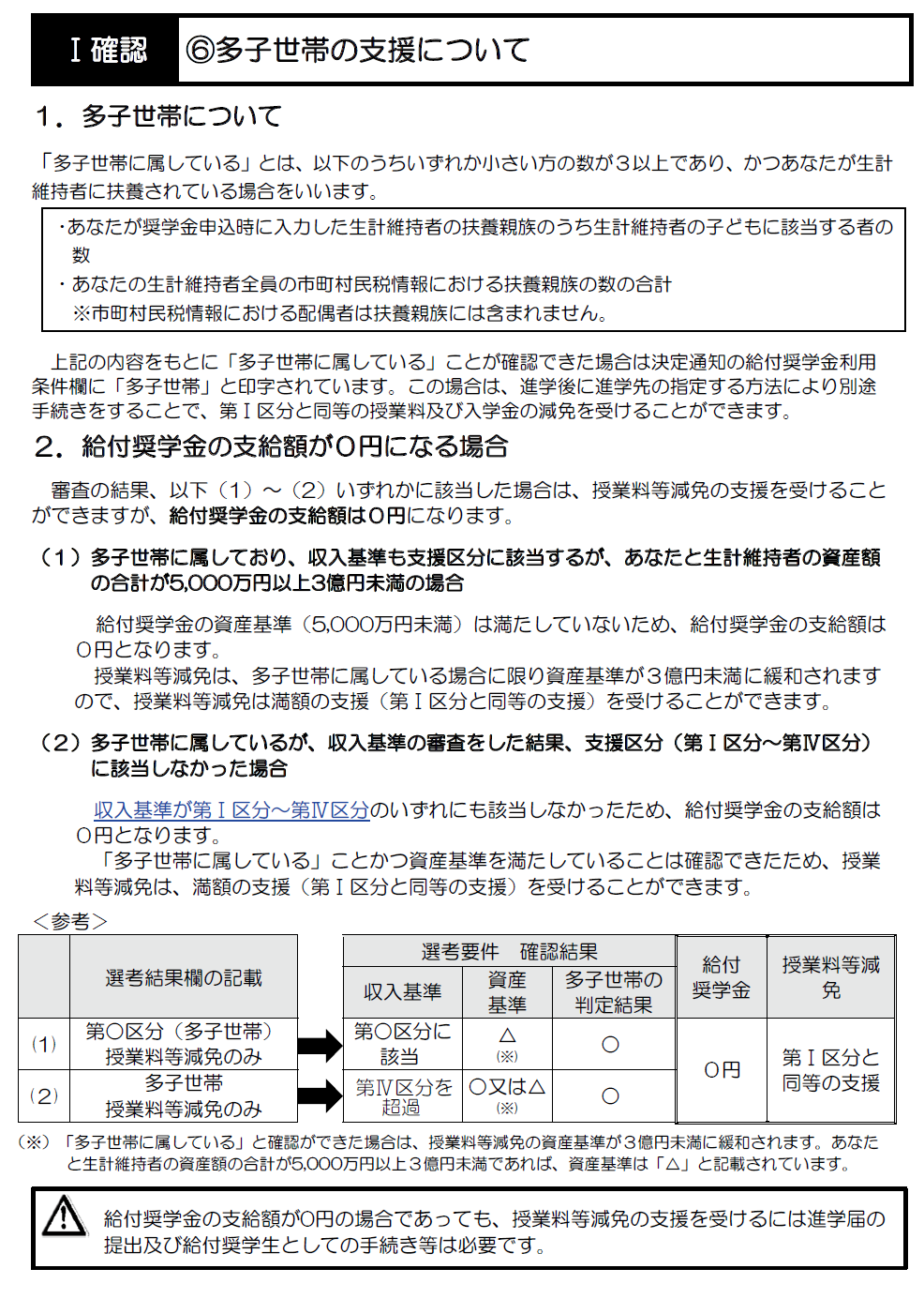 「大学等奨学生採用候補者決定通知(または選考結果通知)」の選考結果の内訳に「マイナンバー手続き・確認書等」または「その他必要書類」に「✕」の記載がある方は下記のリンクをご確認ください。